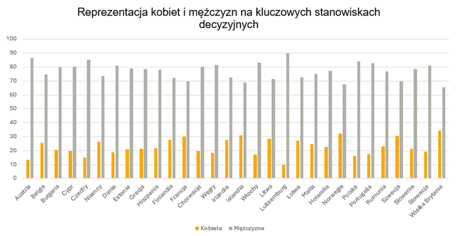 Jak wynika z badań przeprowadzonych przez EIGE (Europejski Instytut ds. Równości Kobiet i Mężczyzn) na stanowiskach dyrektorskich w największych polskich spółkach giełdowych zasiada zaledwie 16,2% kobiet. W Unii Europejskiej gorsze statystyki mają jedynie Czechy (15%), Luksemburg (10%) i Austria (13,4%).